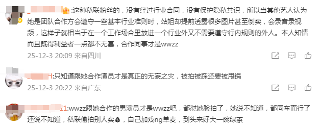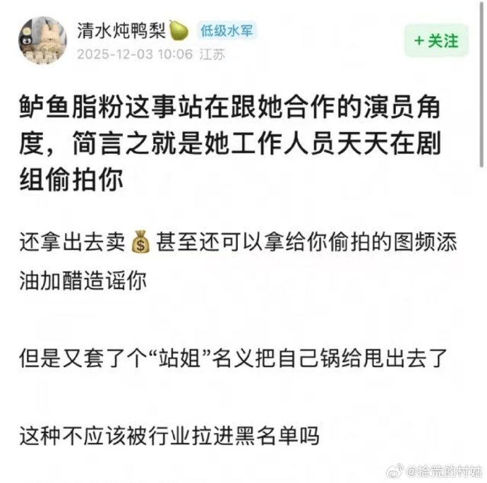也有别家追星姐妹总结,粉丝多的站姐和明星搭上关系很正常,脂粉、粉运这种事在饭圈见怪不怪,大多粉丝都会睁一只眼闭一只眼,只不过涉及到偷拍同组演员的照片用来盈利,还要给人家甩锅,这才犯了众怒。
