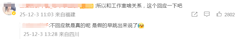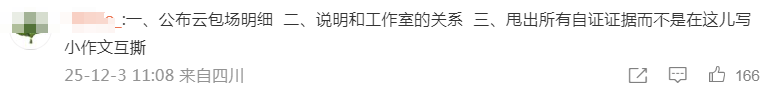 “甩出所有自证证据而不是在这儿写小作文互撕”,但斯文仔细看了下评论区,感觉有些事情吧……没有回应本身可能也是一种回应。就连自家粉丝都有不少人默认她就是有在跟工作室私联的,只是之前没说破罢了。