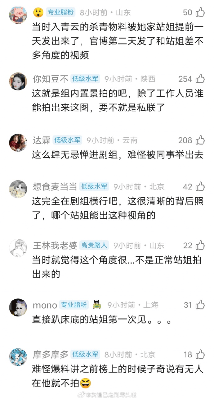 当时有很多粉丝控评说肯定不是《入青云》,但结合杀青物料被女方站姐提前发布,第二天官博发的还是差不多角度的视频来看,不少人都觉得这爆料八成就是真的了。