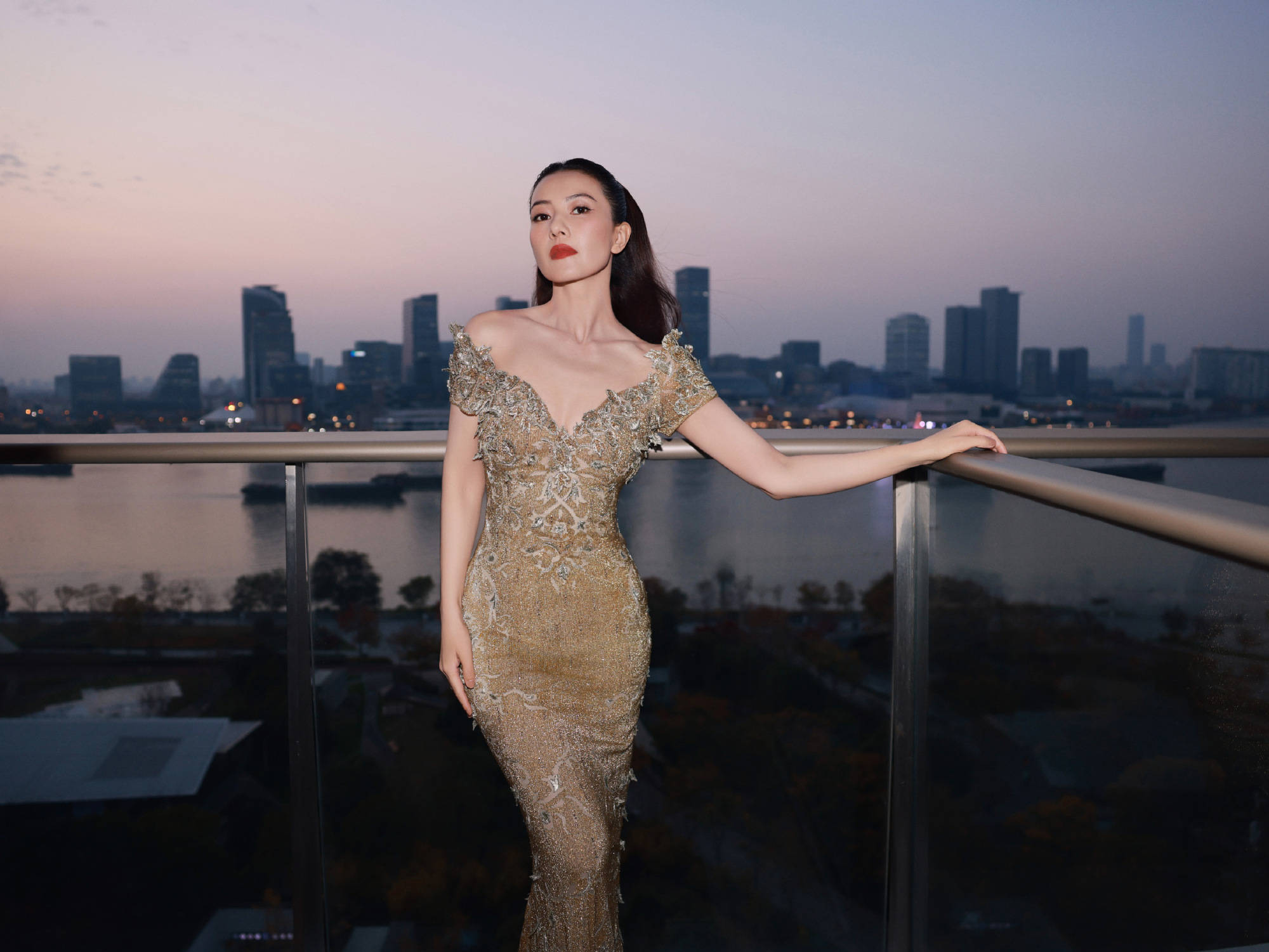 高圆圆身姿曼妙,烈焰红唇妩媚迷人。