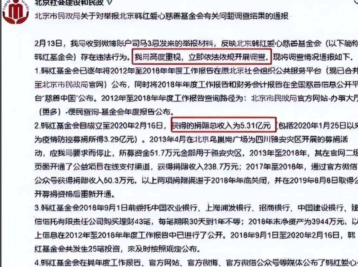 几天之后,官方的调查结果出来了:韩红基金会整体运行正规,账目明白详尽,那所谓的“贪污”纯粹是空谈,没有半点事实依据。