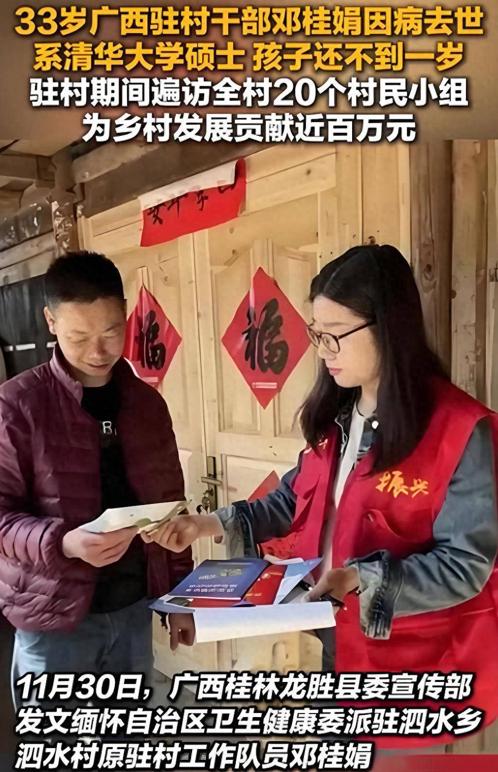 2025年11月30日晚,广西桂林龙胜县县委宣传部公众号发文缅怀邓桂娟:她匆匆离世,留下的是全村人的深深不舍与无限感激。