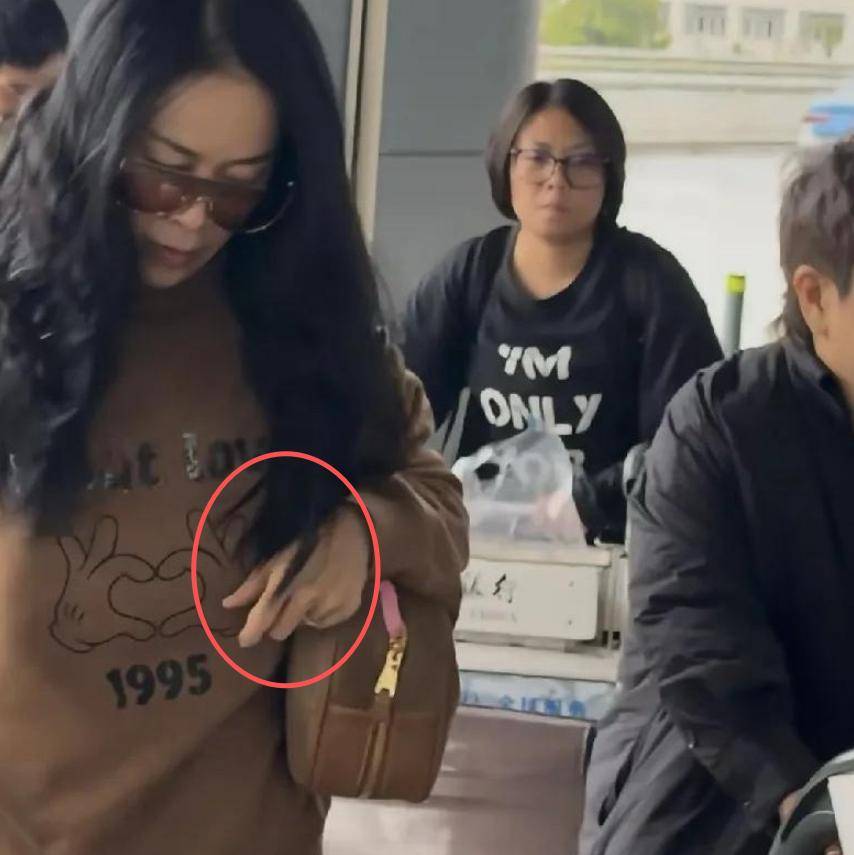 那英最近打扮粉嫩现身机场,手上还戴了一个戒指。