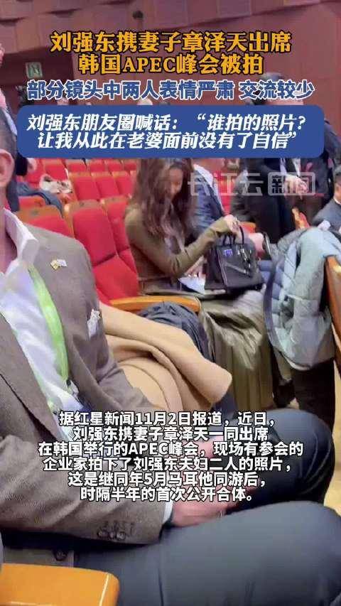在APEC峰会上被传婚变,刘强东在朋友圈自嘲“在章泽天面前已经没有了自信”。
