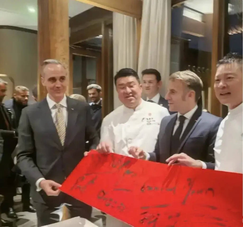 马克龙夫妇在工作人员的陪同下,一起品尝中国式美味。网友接待马克龙总统时,更是满心的激动。