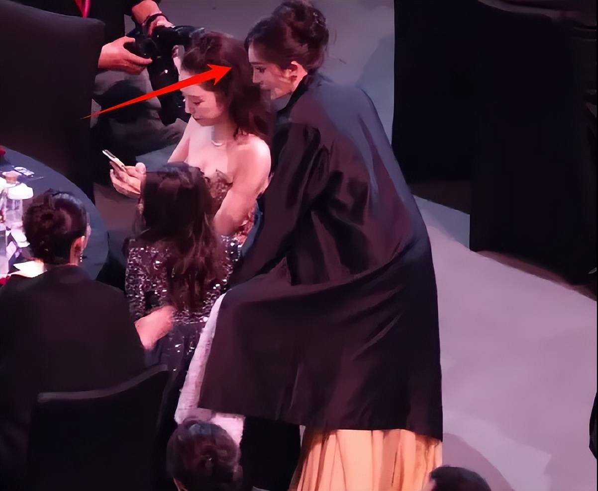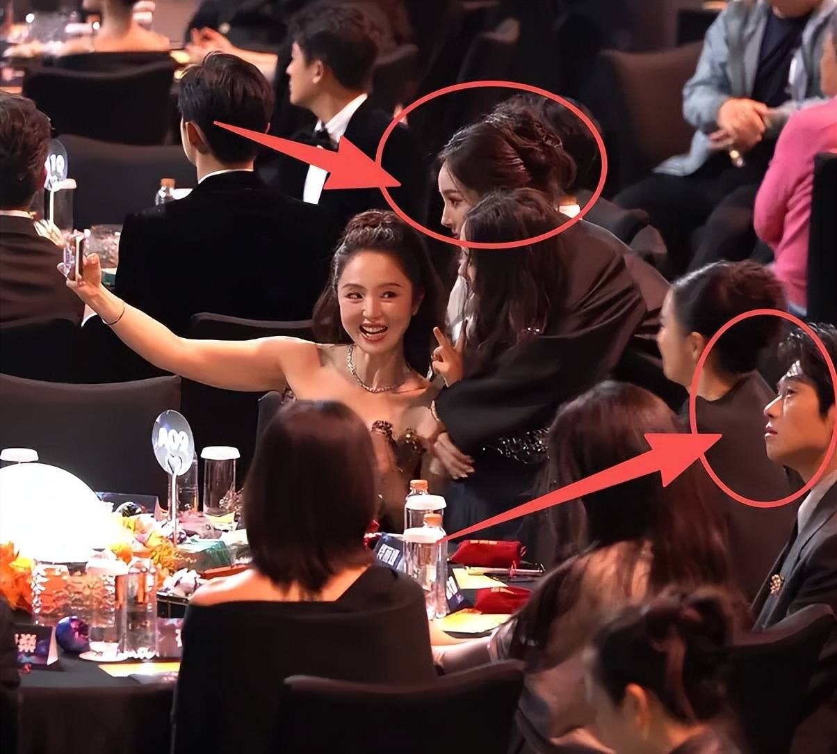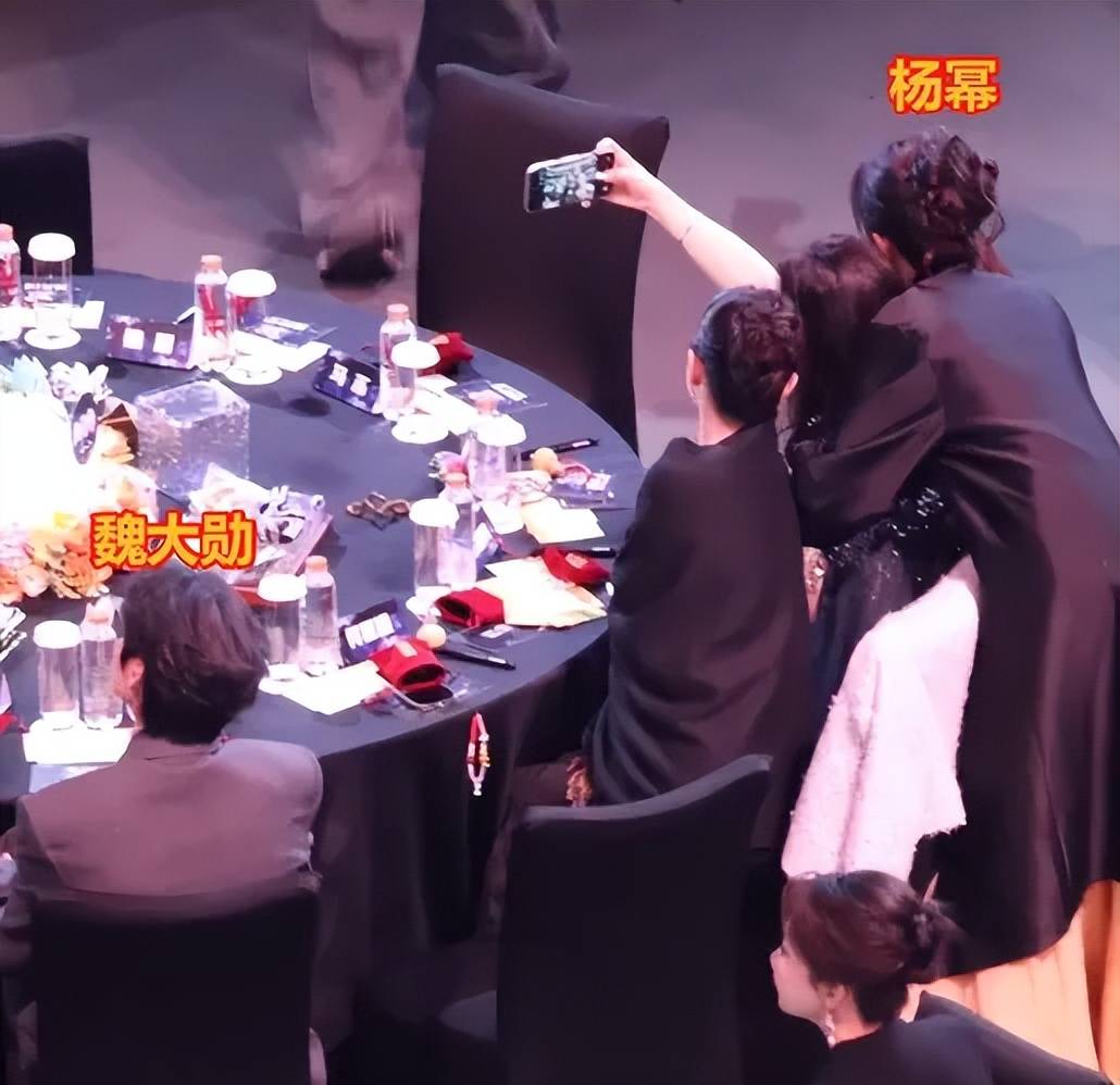 当晚杨幂和董璇女儿小酒窝合照,她站在小酒窝身后,和魏大勋之间只隔了一个佟丽娅,而杨幂和佟丽娅说话的时候,有个往左看的动作,疑似是看到了坐在佟丽娅旁边的魏大勋,看完立马扭头拍照,还侧过身半背对着。搞得后面佟丽娅加入一起合照的时候,还得挪位置。