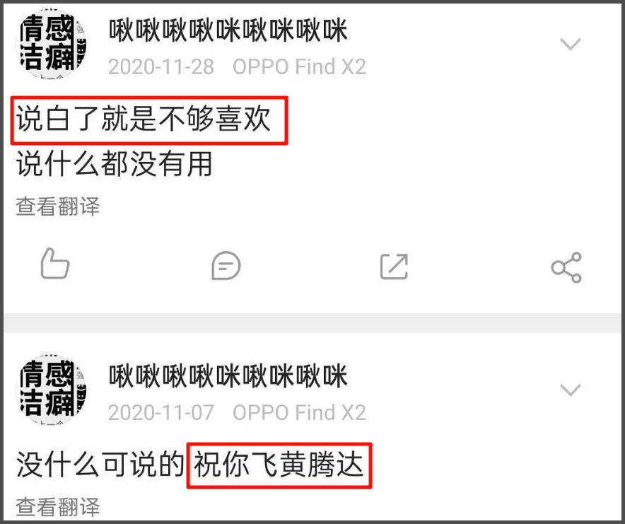 而从杨幂小号发文来看,疑似还是魏大勋决绝分手,杨幂小号感慨“说白了就是不够喜欢”,又说“祝你飞黄腾达”。
