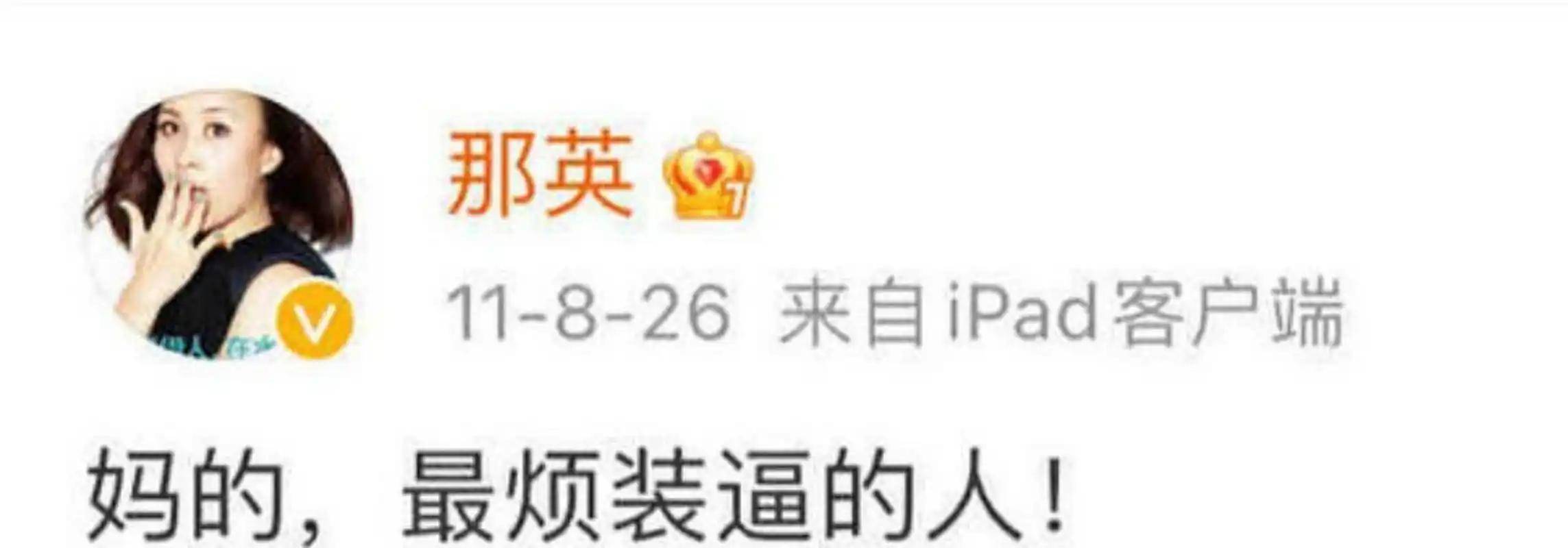 就像她13年前发过的那条微博:“妈的,最烦装逼的人。”以前有人觉得粗俗,现在再回头看,满屏都是“姐还是这么真实”的夸奖。
