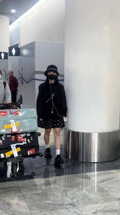 这次机场亮相,沈月穿了件黑色外套,下搭同色小裙子,脚上踩着厚底鞋。