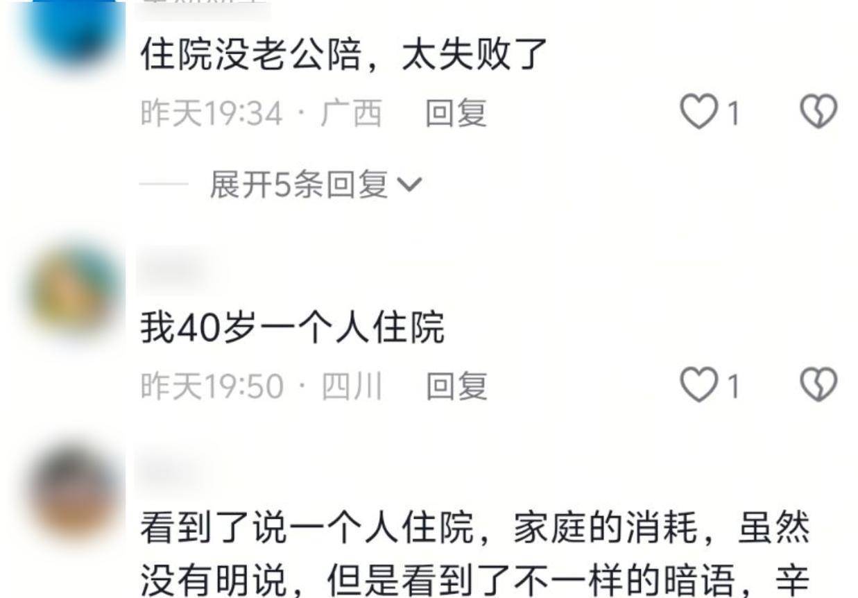 没想到,网友们的注意力都集中在她一个人看病这事上,似乎在猜是不是婚姻出什么问题。