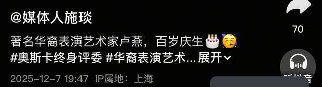 12月7号晚,媒体人施琰加码曝料,原来活动结束后,众人悄悄为其庆祝百岁大寿。并特地分享现场画面,满满的温馨,满满的幸福,另外,卢燕还特地分享了一则重要的消息,那就是明年仍然有节目推出。