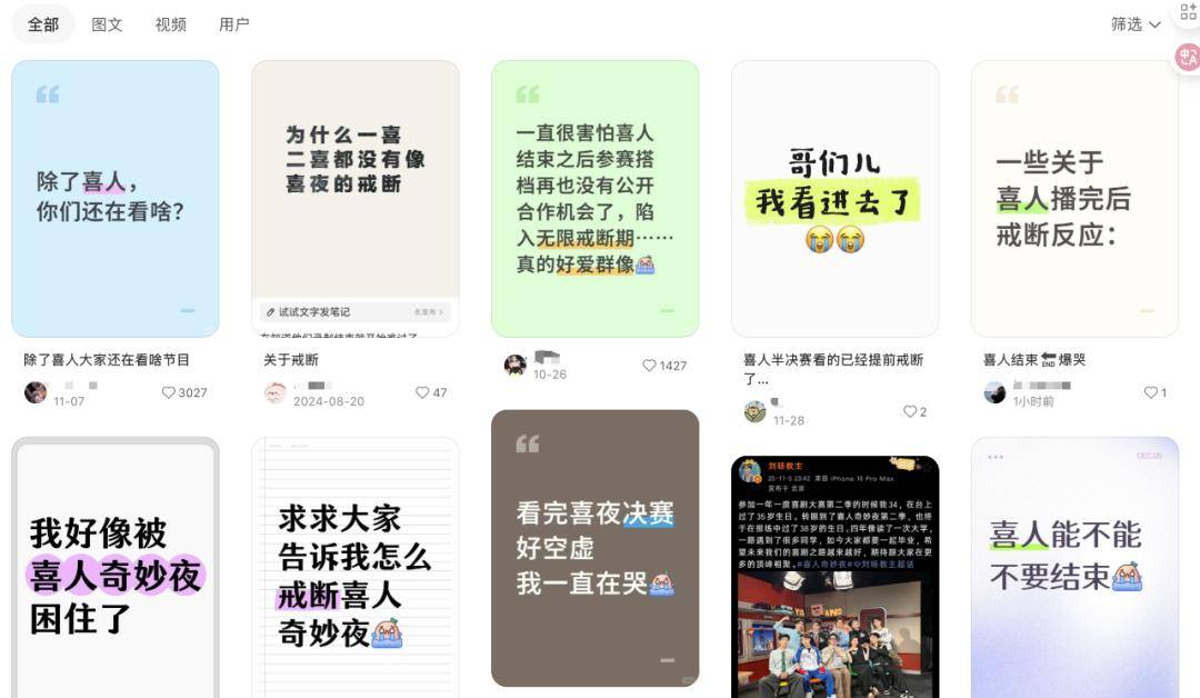 决赛播出不久,社交媒体上就已经开始出现担忧无法戒断的帖子。