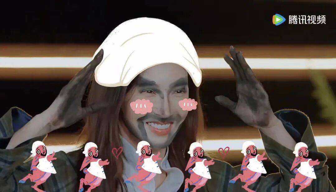 一次游戏里大家互相涂抹锅灰,镜头挪到金晨面前,范丞丞表示还能加两笔,硬生生把大喜画成了斗地主农民。
