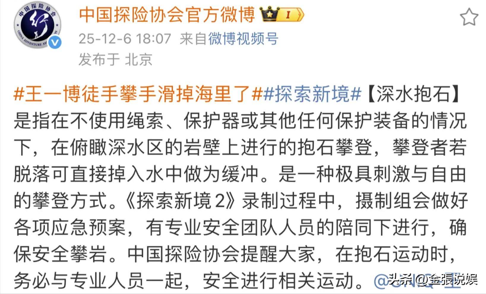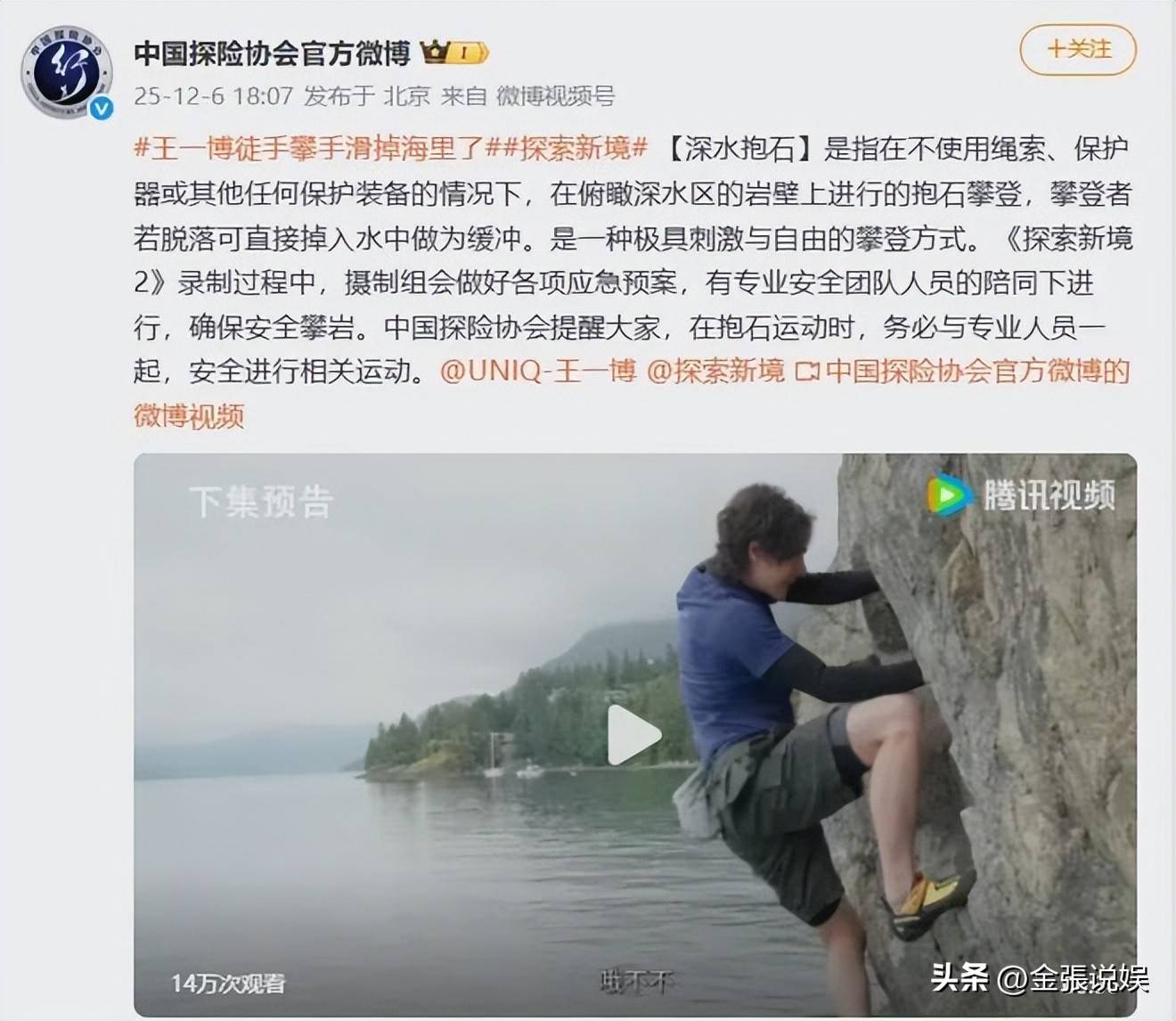 28岁的王一博又上热搜了,这次不是因为新电影,不是因为时装周,而是在节目录制时攀岩手滑直接掉进了海里。