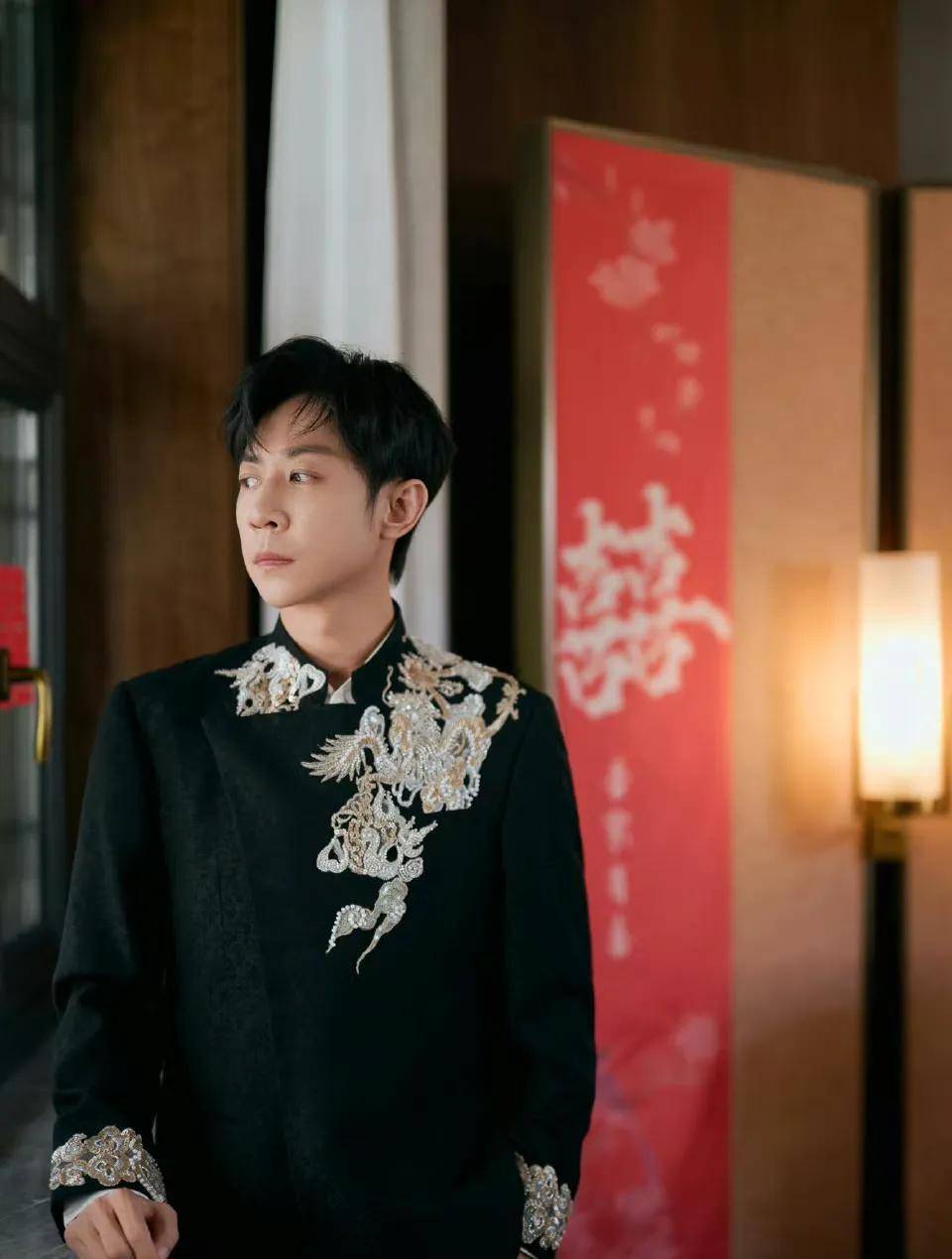 张维伊则身着黑色新中式礼服,经过精心打理,发型利落,显得格外精神挺拔。他与董璇深情对视,眼波流转间,爱意藏都藏不住。