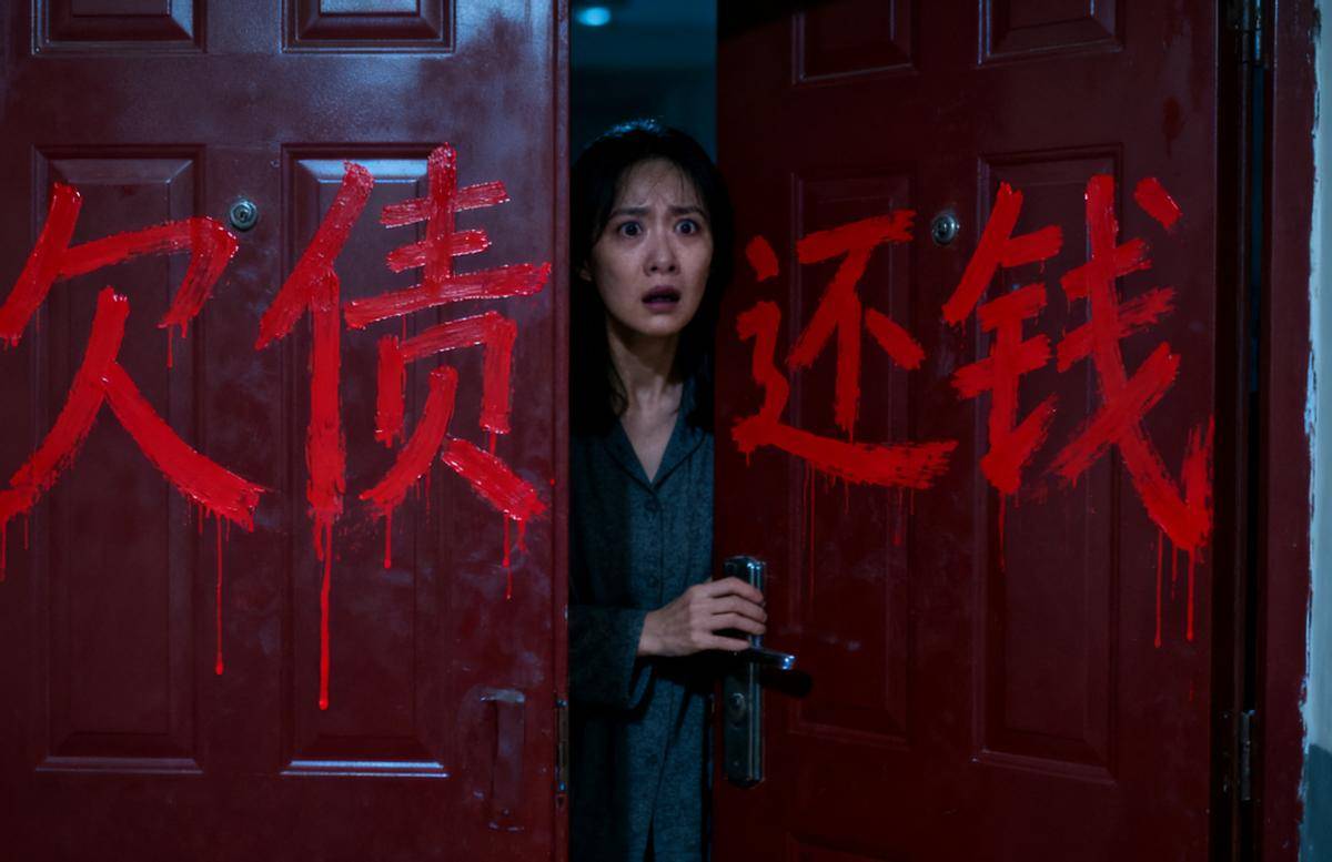 第二天,天还没亮透,林晚秋就被一阵剧烈的敲门声惊醒。她打开门,一股刺鼻的油漆味扑面而来。朱红色的防盗门上,被人用红油漆歪歪扭扭地刷了四个大字:欠债还钱。