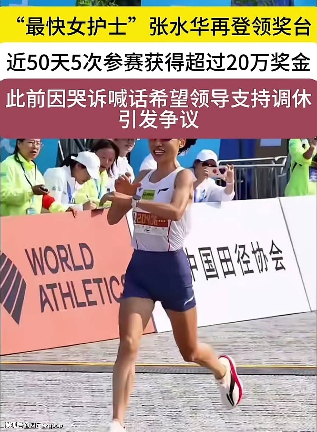 护士的本职是救死扶伤,她倒好,心思全放在跑马拉松赚奖金上了,近50天跑5场比赛拿了20多万奖金,工作能不耽误吗?