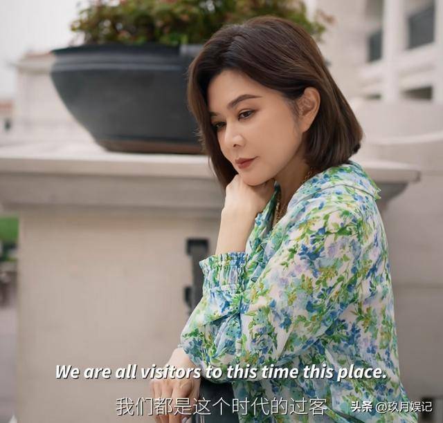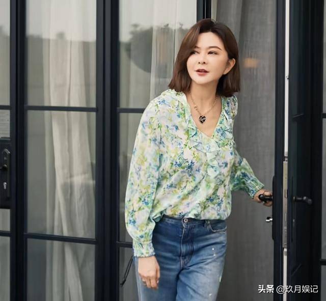 画面中,关之琳穿着一件翠绿色的点缀短袖,搭配上牛仔裤和一头棕色的短发,整个人的气质依旧不减当年。