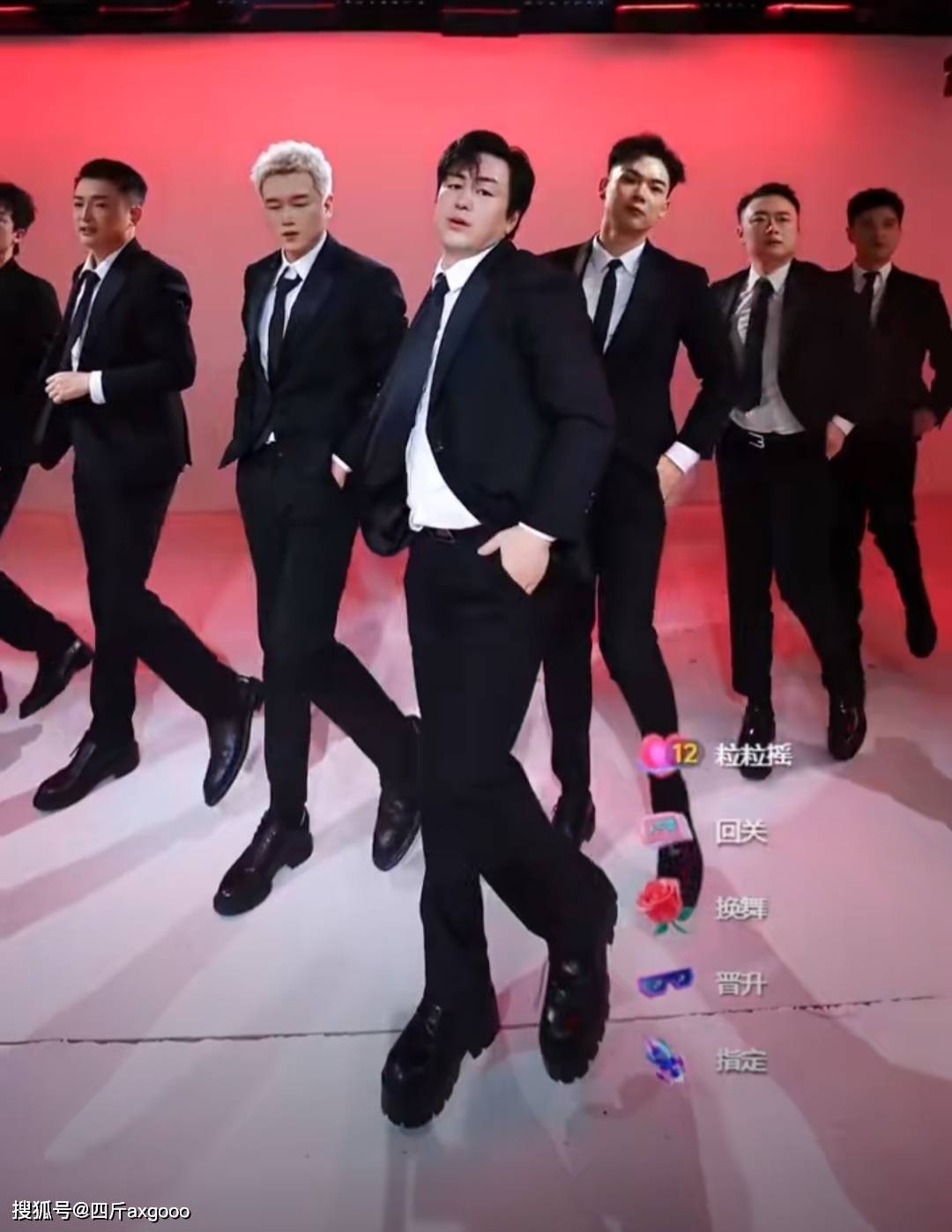 人家直接用了“团播”的形式,一大群人,跟那个“玩篮球”的光头一个阵形。