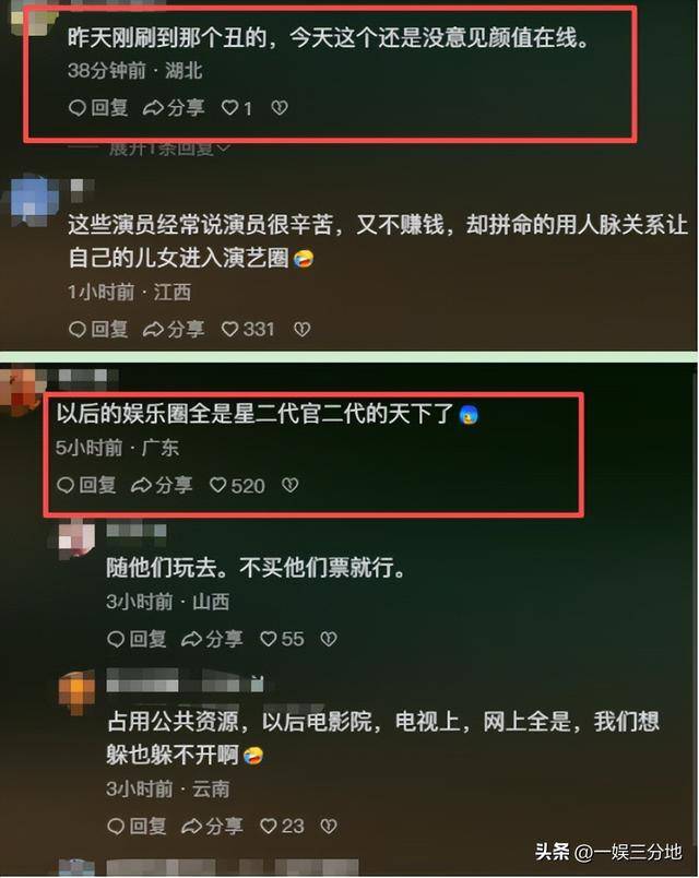 大家辣评道:“以后娱乐圈全是星二代官二代的天下了。”