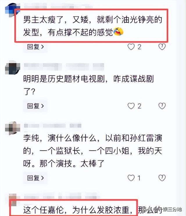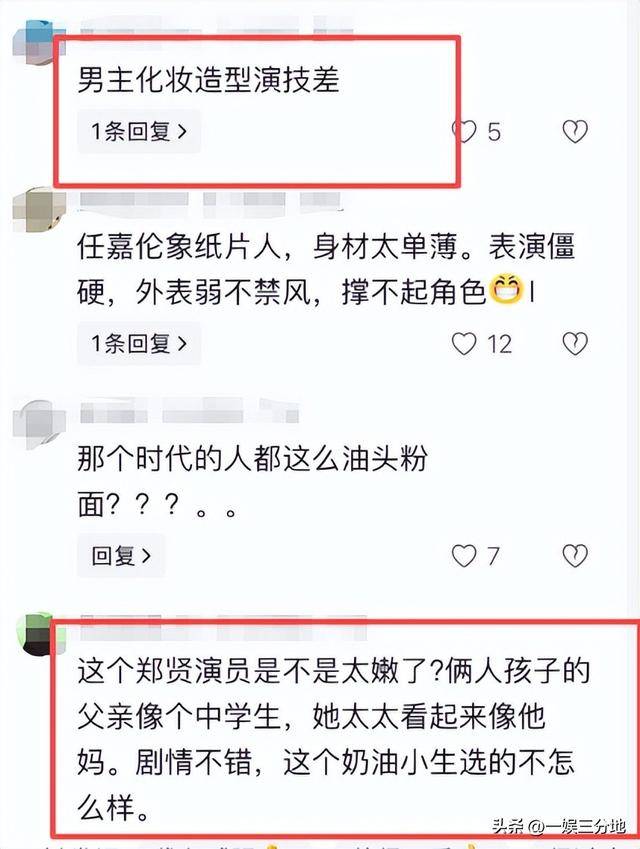 但,作为主角、瘦成杆整了大背头的任嘉伦和“亲情演成爱情”的蓝盈莹,他们两个人的演技,遭到了吐槽:“撑不起来此剧。”