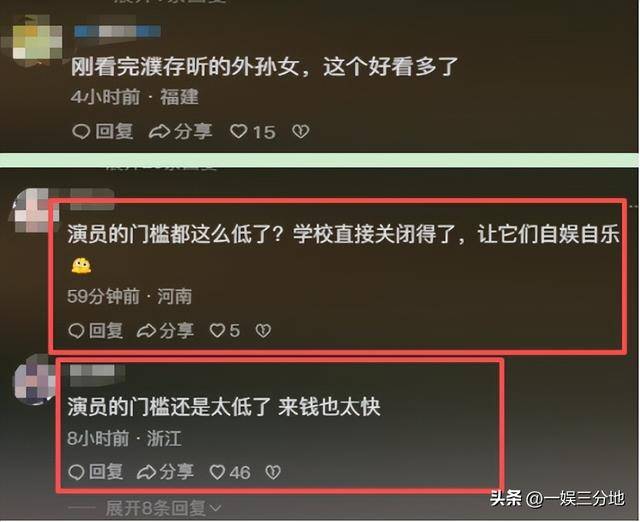 观众辣评道:“演员的门槛这么低了,不看,让他们自娱自乐吧。”