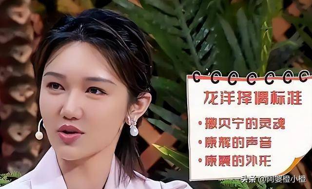 有次节目里被问择偶标准,她半开玩笑说“要撒贝宁的灵魂、康辉的声音,再加上康震的学识”,。