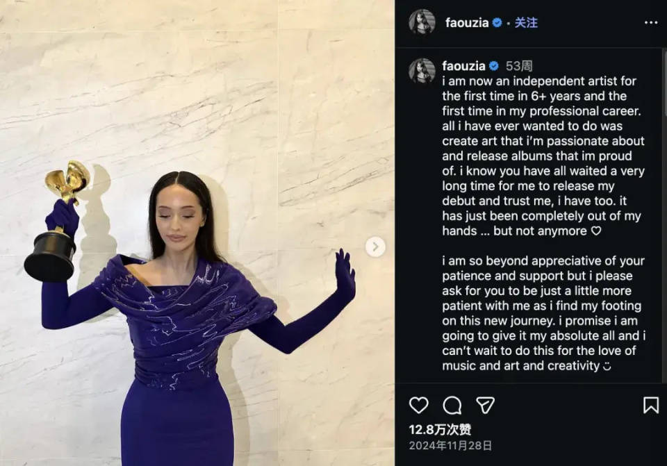 很多新人甚至因为流量不够不能发专辑,不得不浪费时间等待机会。去年在《歌手2024》给中国观众留下深刻印象的00后歌手凡希亚(Faouzia)就因此选择独立自主,这才终于发行了自己等待多年的首张全长专辑。