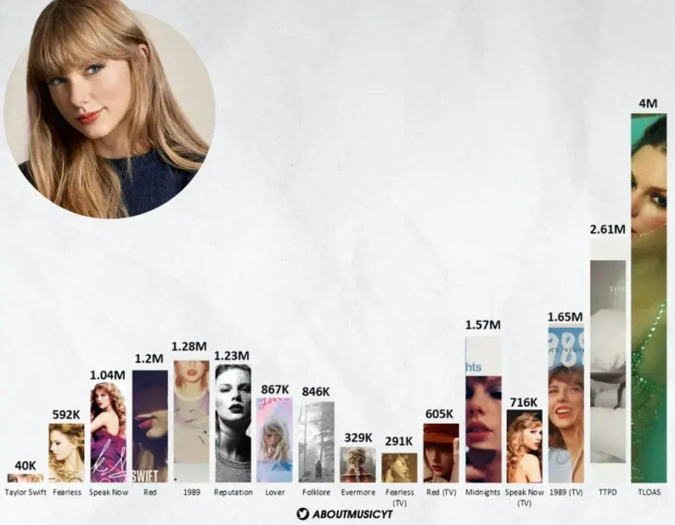 最典型的例子当然是Taylor Swift,在传统唱片业时代,很难想象一位歌手在出道十多年发行了十几张专辑之后,热度还能不降反增。