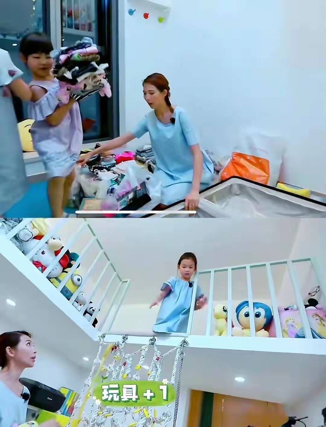 虽然房子小,但是家里的东西却不少。蔡少芬是女明星,各种服装、礼服、高跟鞋都有一大堆。她平日里喜欢打扮女儿,两个女儿的衣服也不少。