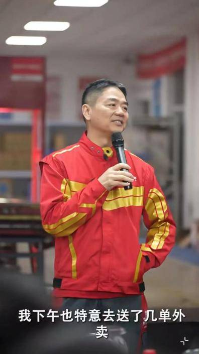 今年4月,刘强东身着骑手标志性的红色工服,穿梭于大街小巷,亲自为用户配送外卖。