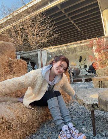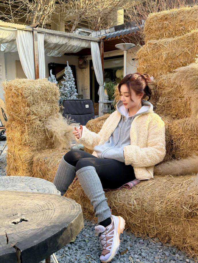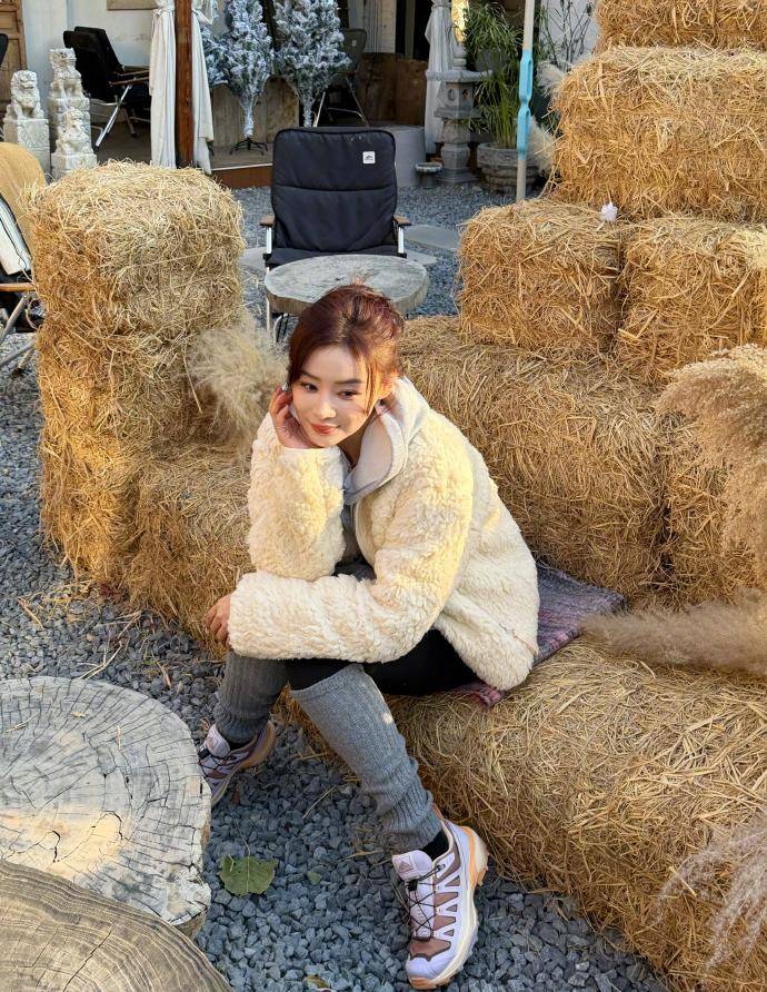 袁姗姗美得太耐看!羊毛针织衫搭鲨鱼裤,温柔气质拉满。