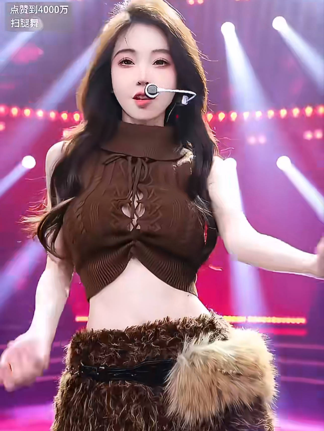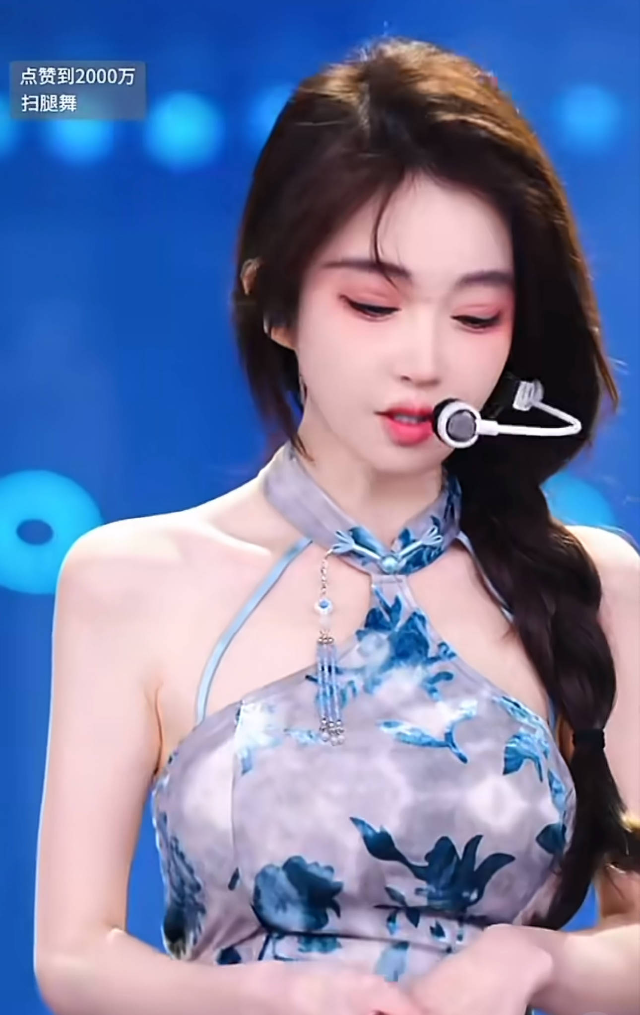 冯提莫耳麦造型与精致妆容相衬,舞台状态良好。