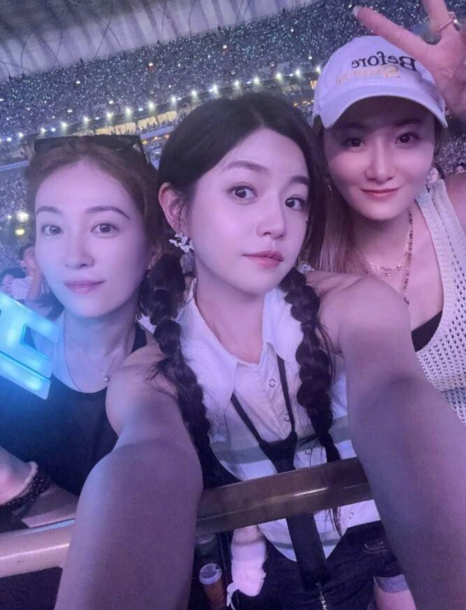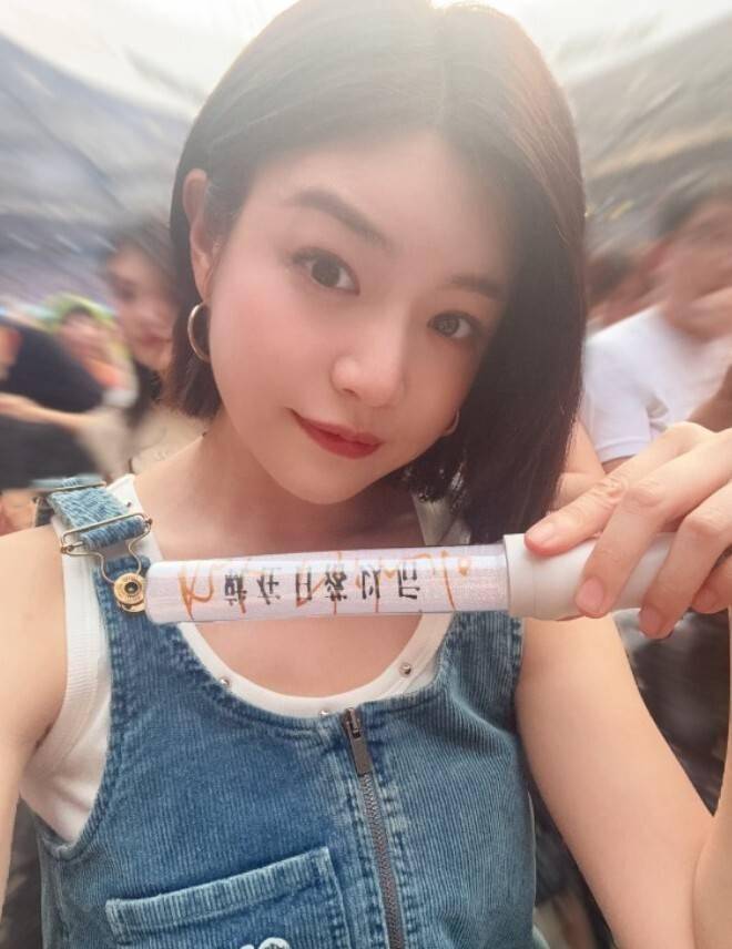 在演唱会现场,陈妍希看着就像个女大学生,颜值和身材依旧在线。