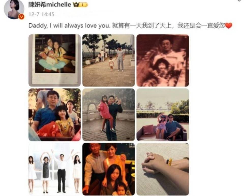 2024年,陈妍希在社交平台发文悼念去世的父亲。