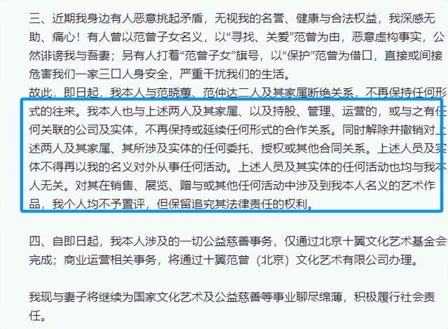 也就是说,范曾与两人彻底断绝父子父女的关系。