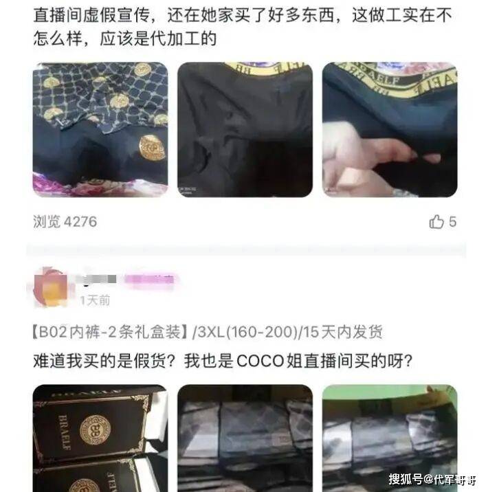 在众多被质疑的商品中,虫草内裤、人参内裤等更是引发了轩然大波。这些内裤被宣传得神乎其神,COCO 姐称内裤里含有虫草精华、人参精华,还有 “6 颗按摩颗粒”“6 颗能量奇石”,能 “自发热会按摩”,甚至用 “给弟弟安排个豪宅” 这样的话术来吸引消费者 。然而,当消费者收到货后却发现,内裤的实际成分与宣传相差甚远,成分为 95% 聚酯纤维和 5% 氨纶,和直播间宣传的纯棉完全不一致,所谓的虫草、人参精华更是无从谈起。这种虚假宣传的行为,让消费者感到被欺骗,也引发了社会各界对直播带货行业诚信问题的关注 。