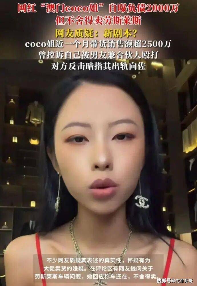 除了商品问题,澳门 COCO 姐的卖惨行为也引发了网友的广泛质疑。在一场直播中,她一改往日的霸气形象,素面朝天,神情落寞,自曝因前合伙人兼前男友的操作,已经背负了 2000 多万元的债务,仓库里积压着 20 多万件衣服库存 。她还展示了自己右侧额头的淤青,称是被男友殴打所致,言语中满是委屈和无奈,仿佛一夜之间从风光无限的 “女大佬” 变成了落魄的 “负婆”。