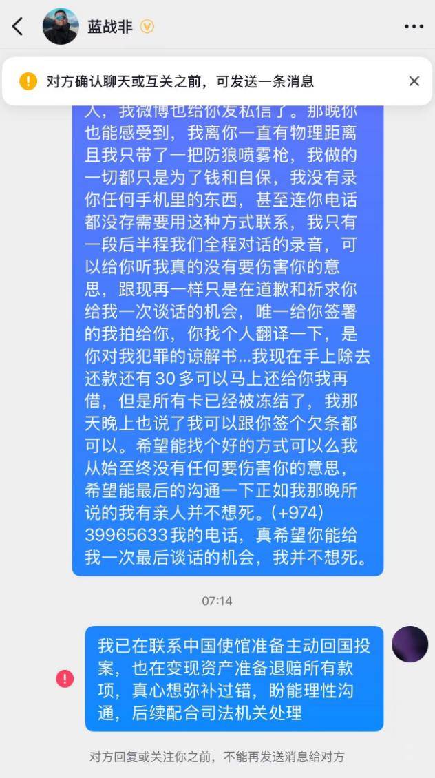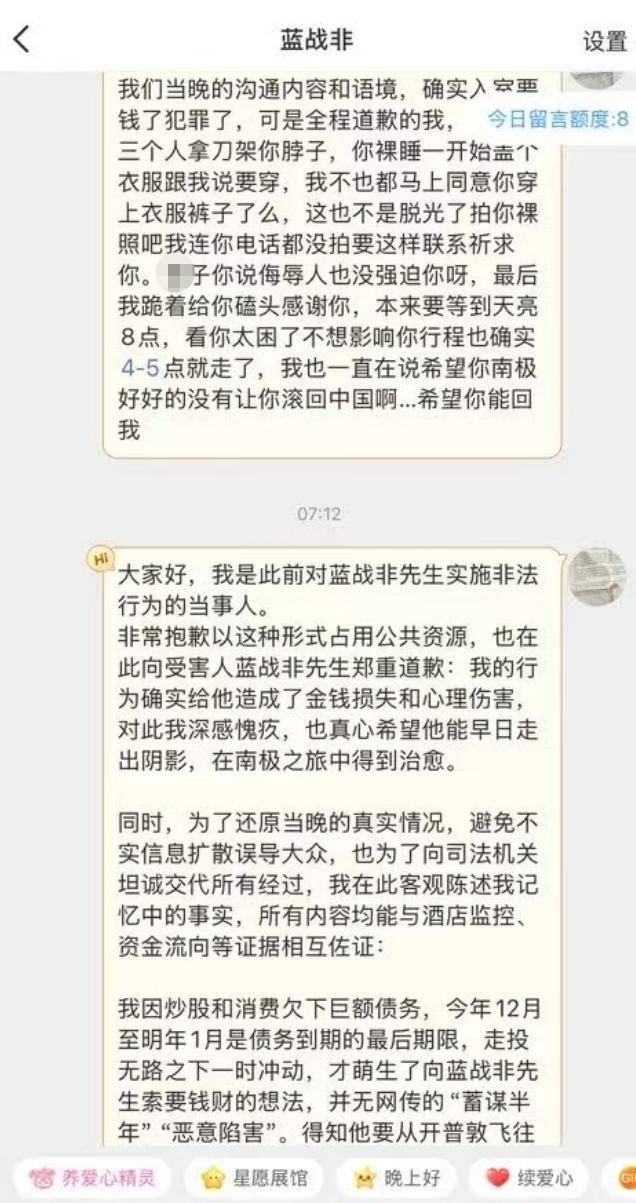 希望求得蓝战非原谅,并晒出当时逼迫蓝战非签字的合同。