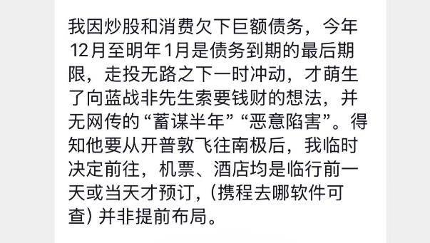 他说自己是因炒股负债,所以才出此下策绑架蓝战非。