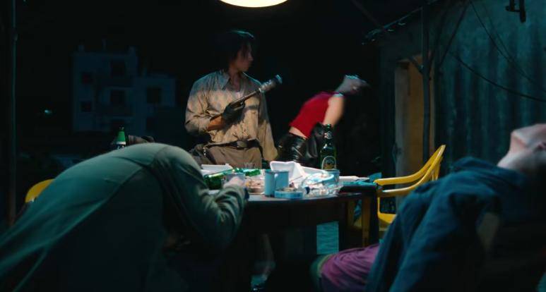 且在不远处的一座楼的楼顶上,一个长发青年曹州陈(安志杰 饰)正拿着一个望远镜远程指挥。
