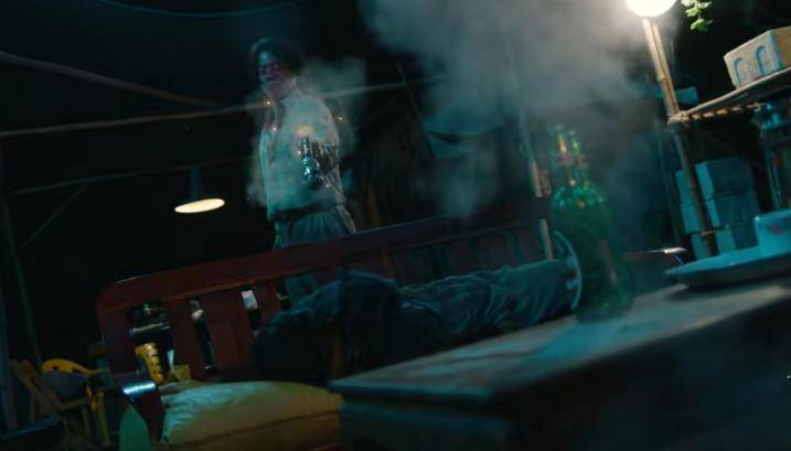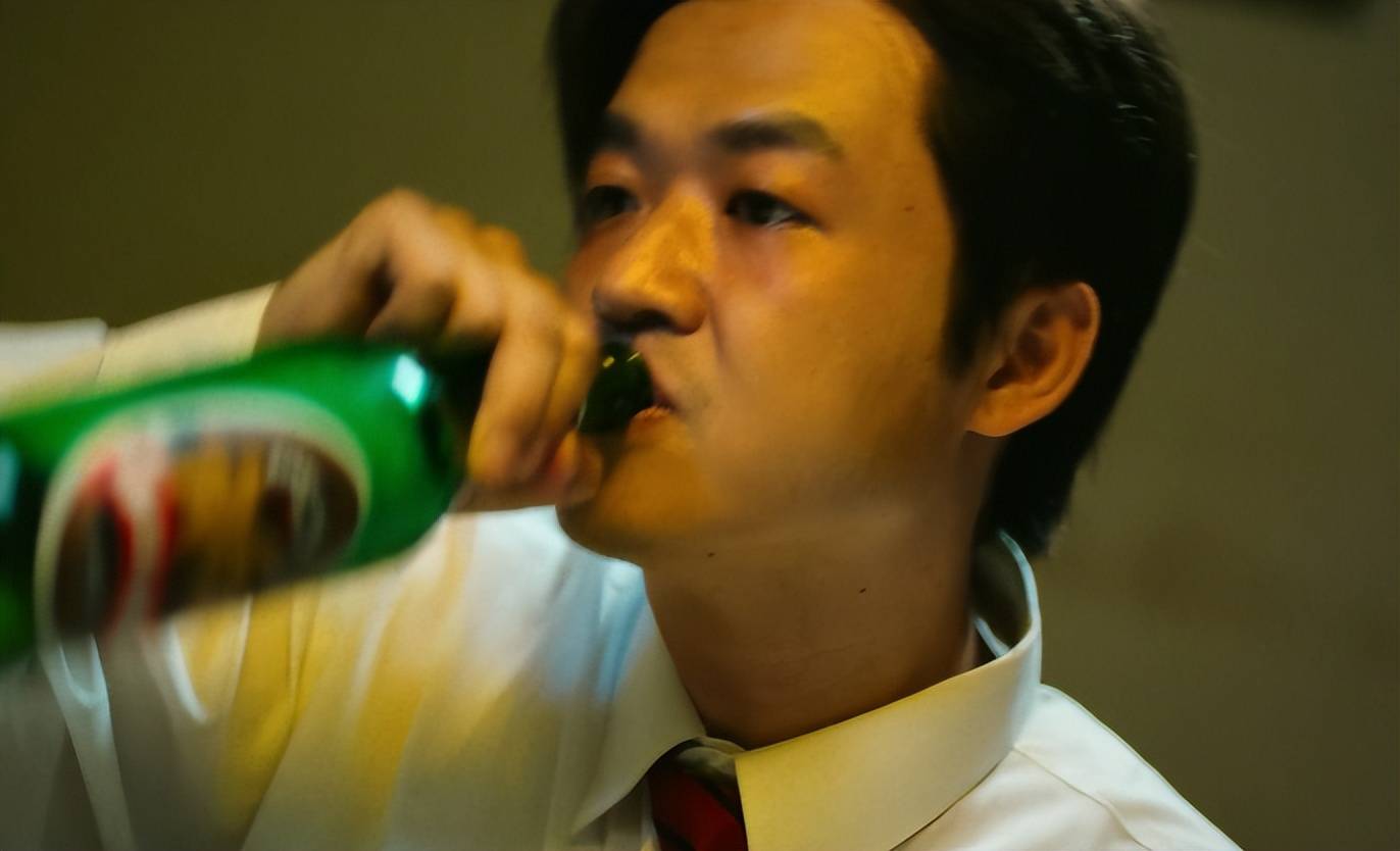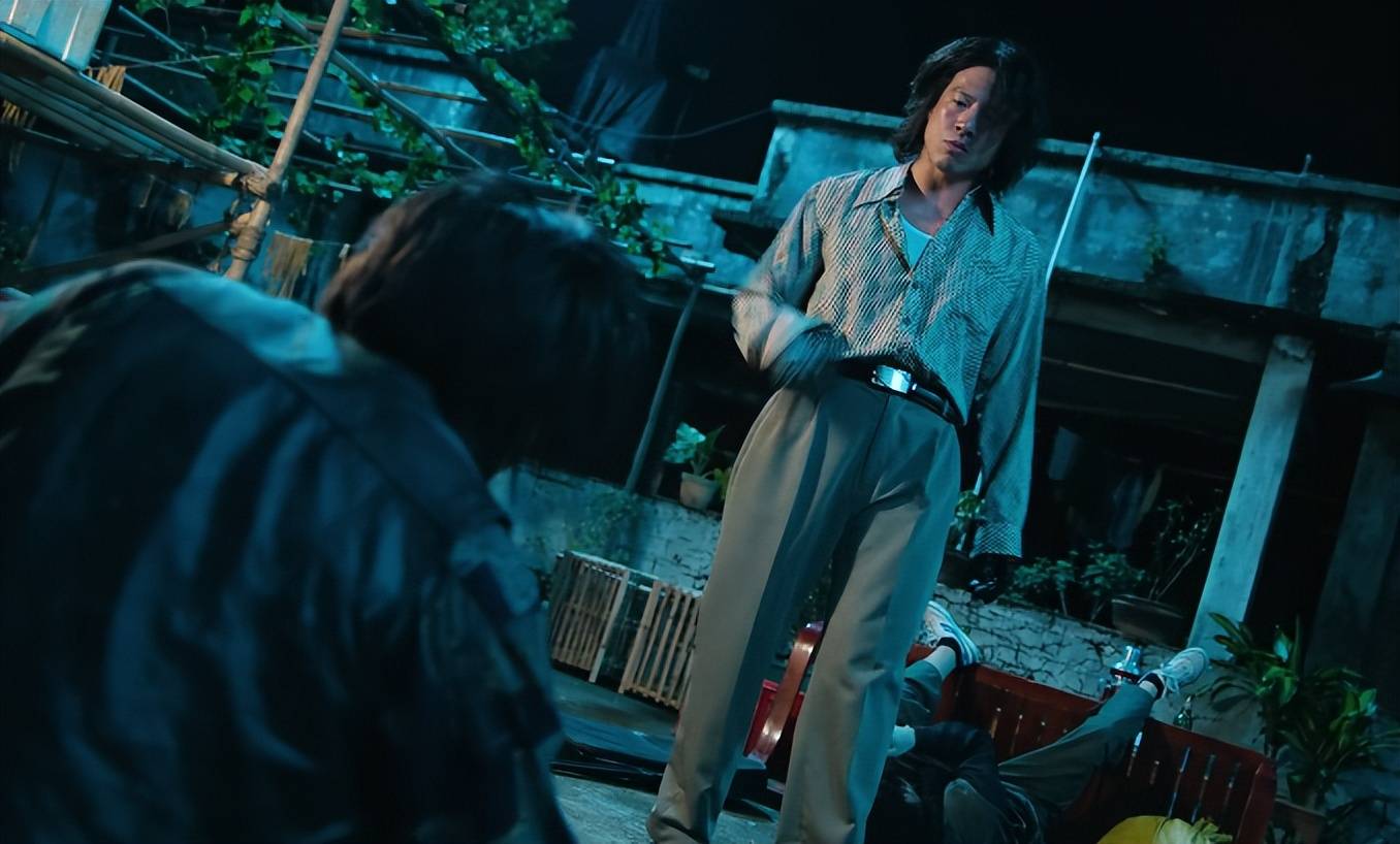 片中有一幕,就是他以准女婿的身份去见老赵,而等后者离去,他先是吹了一口气,然后提着啤酒瓶,眼神冰冷的喝酒时,整个人充满了戾气。