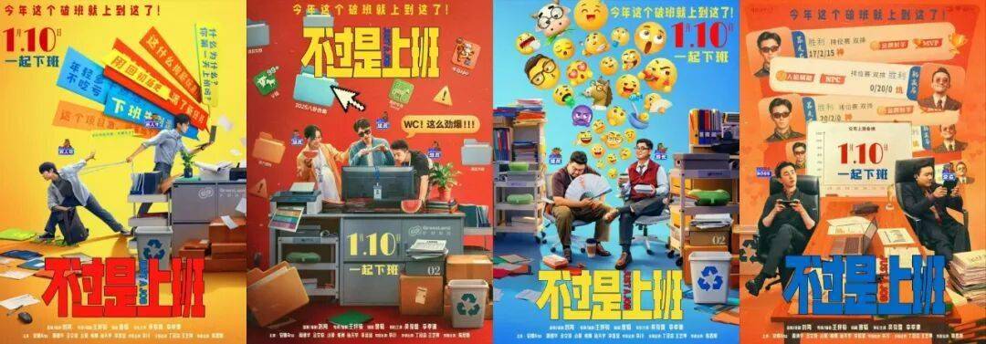 电影《不过是上班》发布一组“职场搭子”关系海报,生动诠释四种不同的办公室相处模式。海报以游戏排位、工位吃瓜、被迫内卷、文件堆里干饭等场景,拆解了“游戏搭子”“吃瓜搭子”“内卷搭子”“饭搭子”四种职场生态,以幽默视角呈现了打工人的日常生存状态。该片由王梓骏导演,吴俊霆、李孝谦领衔主演,将于1月10日全国上映。