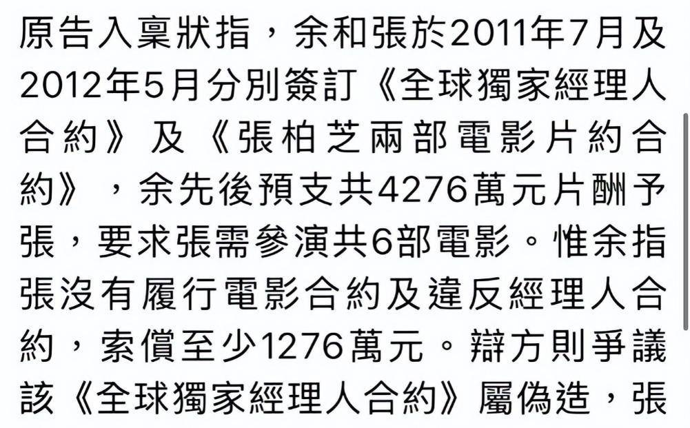 昔日合作期间,他曾私自以张柏芝名义与他人签约,收取定金后却爽约,导致合作方直接将张柏芝告上法庭。事后调查发现,整件事张柏芝毫不知情,从未与对方联系,所有文件均系经纪人伪造公章私自签署。