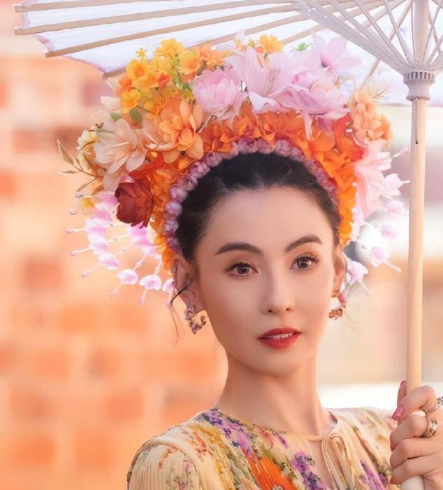 照片中,45岁的她状态极佳,骨相优越,只需淡妆点缀便惊艳夺目。她化身“花仙子”,发间与衣裙缀满鲜花。这身造型若换作常人恐怕难以驾驭,在她身上却显得恰到好处。