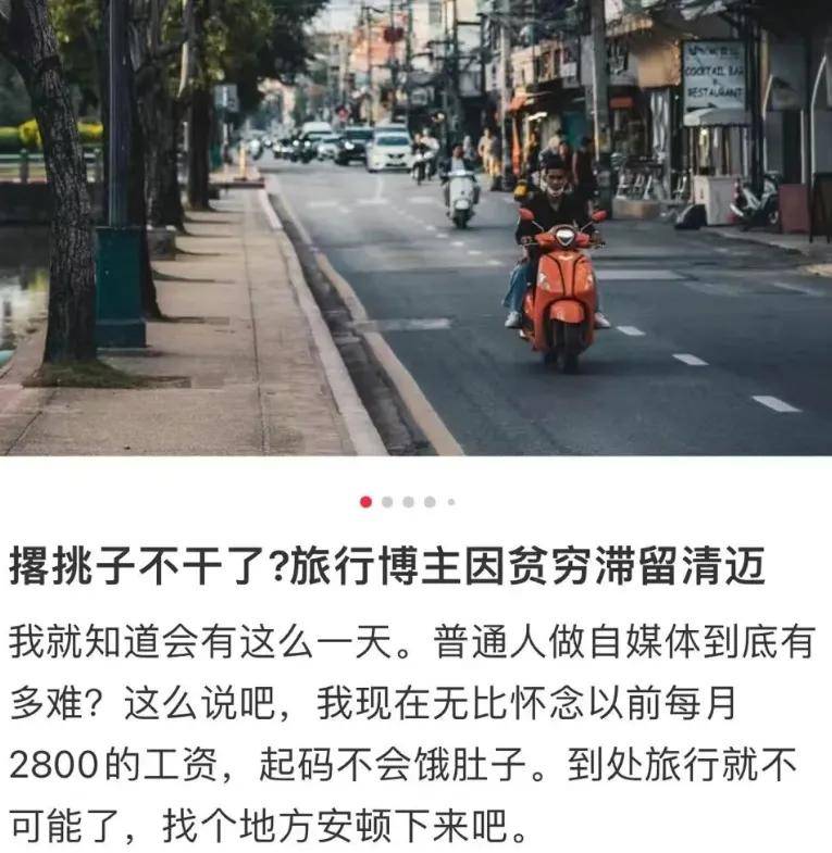 小红书上,有博主发了一篇名为“旅行博主因贫穷滞留清迈”的笔记,自嘲自己是年入3000元的旅行博主,引起了不少同行的共鸣。