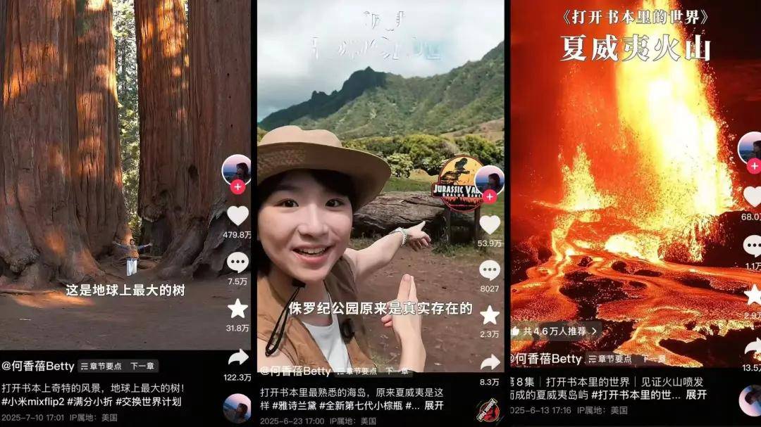 直到今年3月,她开始更新系列视频“打开书本里的世界”,她把书本中的世界级名胜古迹拍成视频,半年累计涨粉超590万。