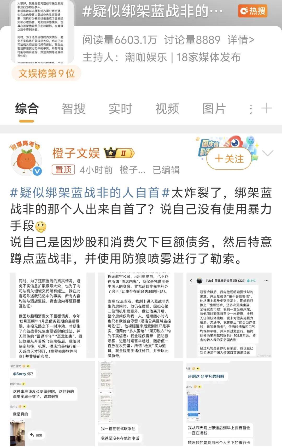 自从前两天蓝战非自曝被绑架,相关话题多次登上热搜,短短两天内不断反转。