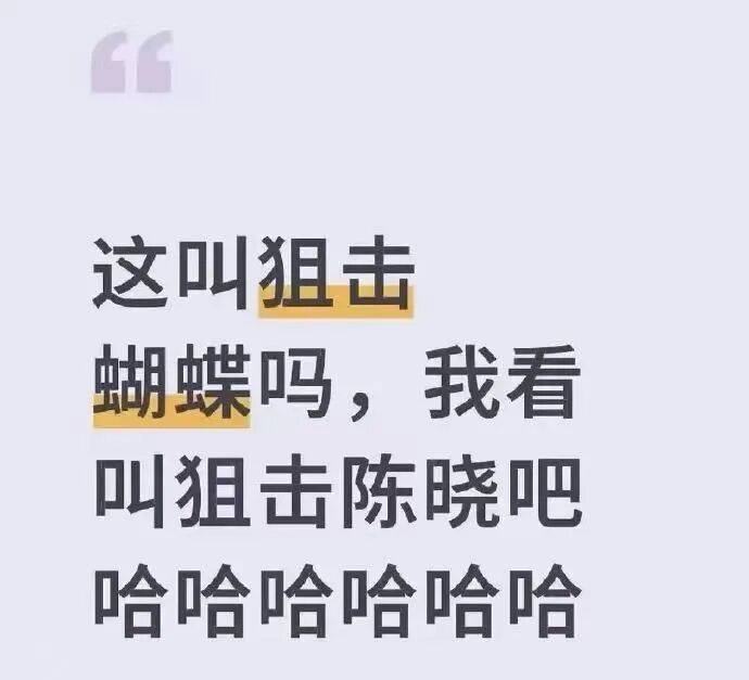 然后陈妍希的《狙击蝴蝶》这才播了几天呢,又被网友和观众们亲切的改名为“狙击陈晓”了。