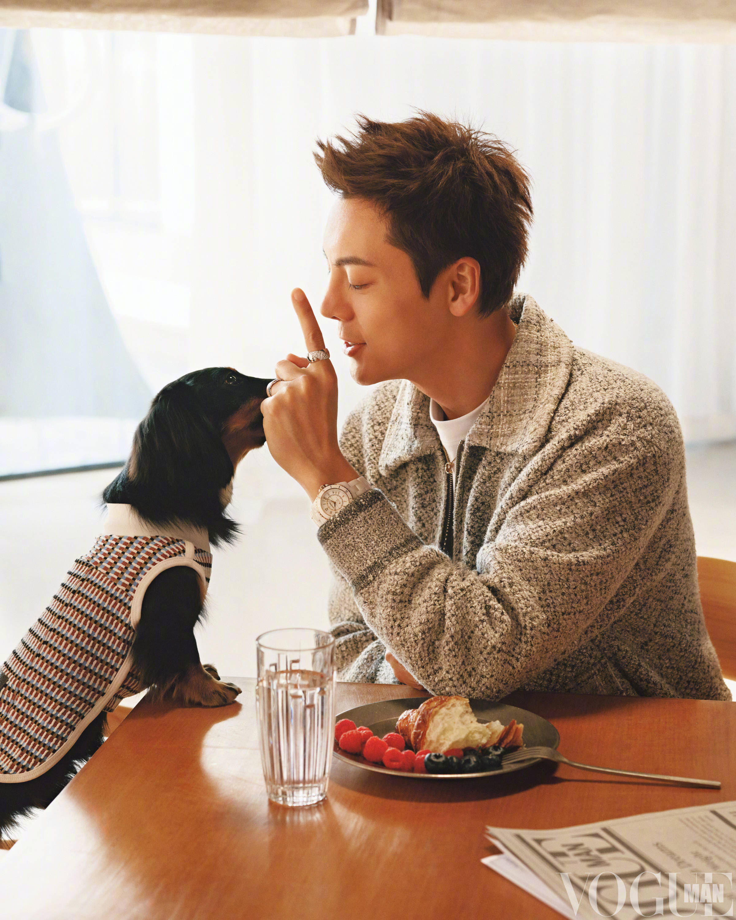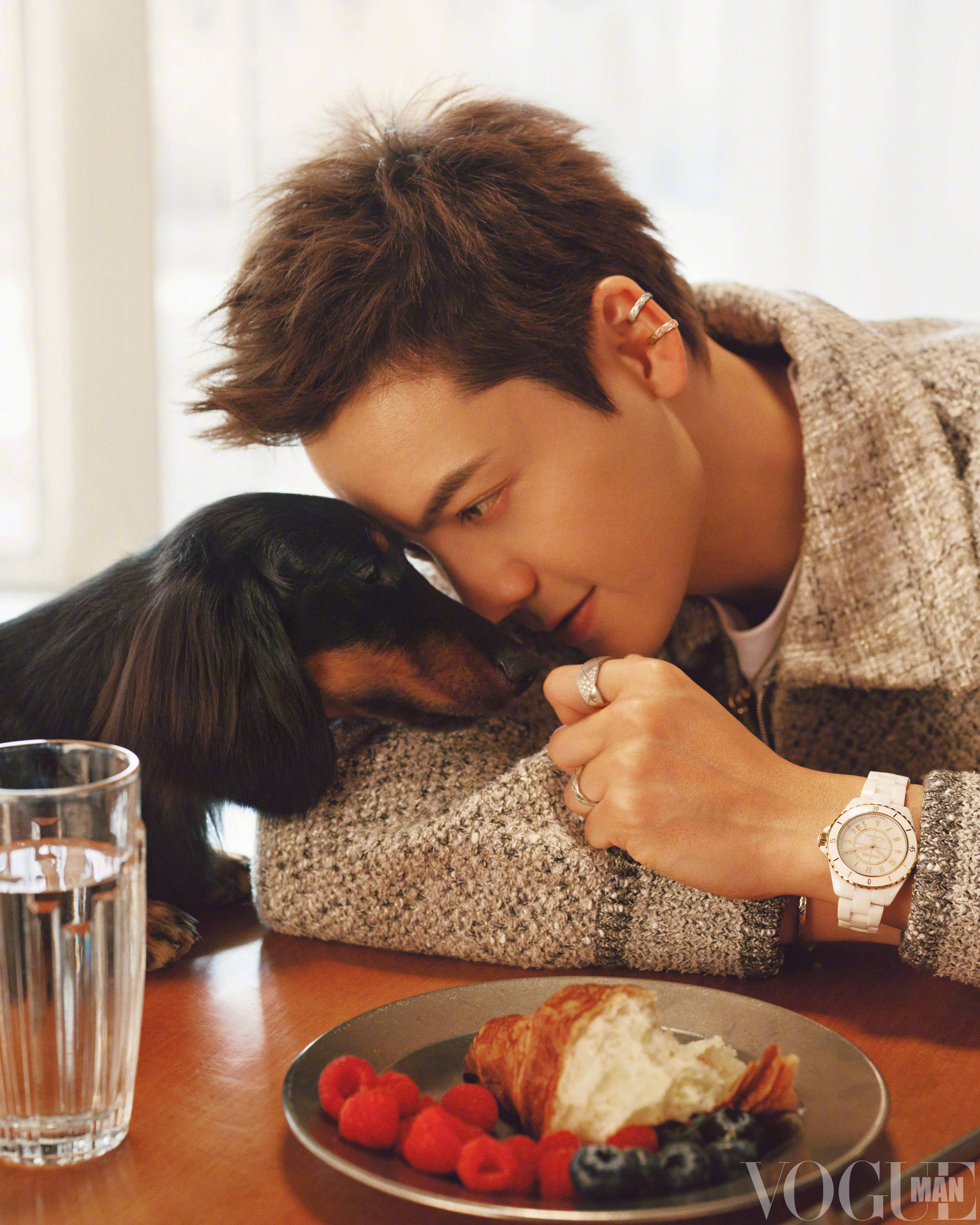 陈伟霆登杂志封面写真曝光 与狗狗互动温柔帅气